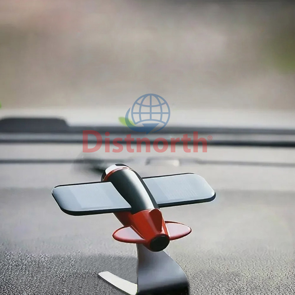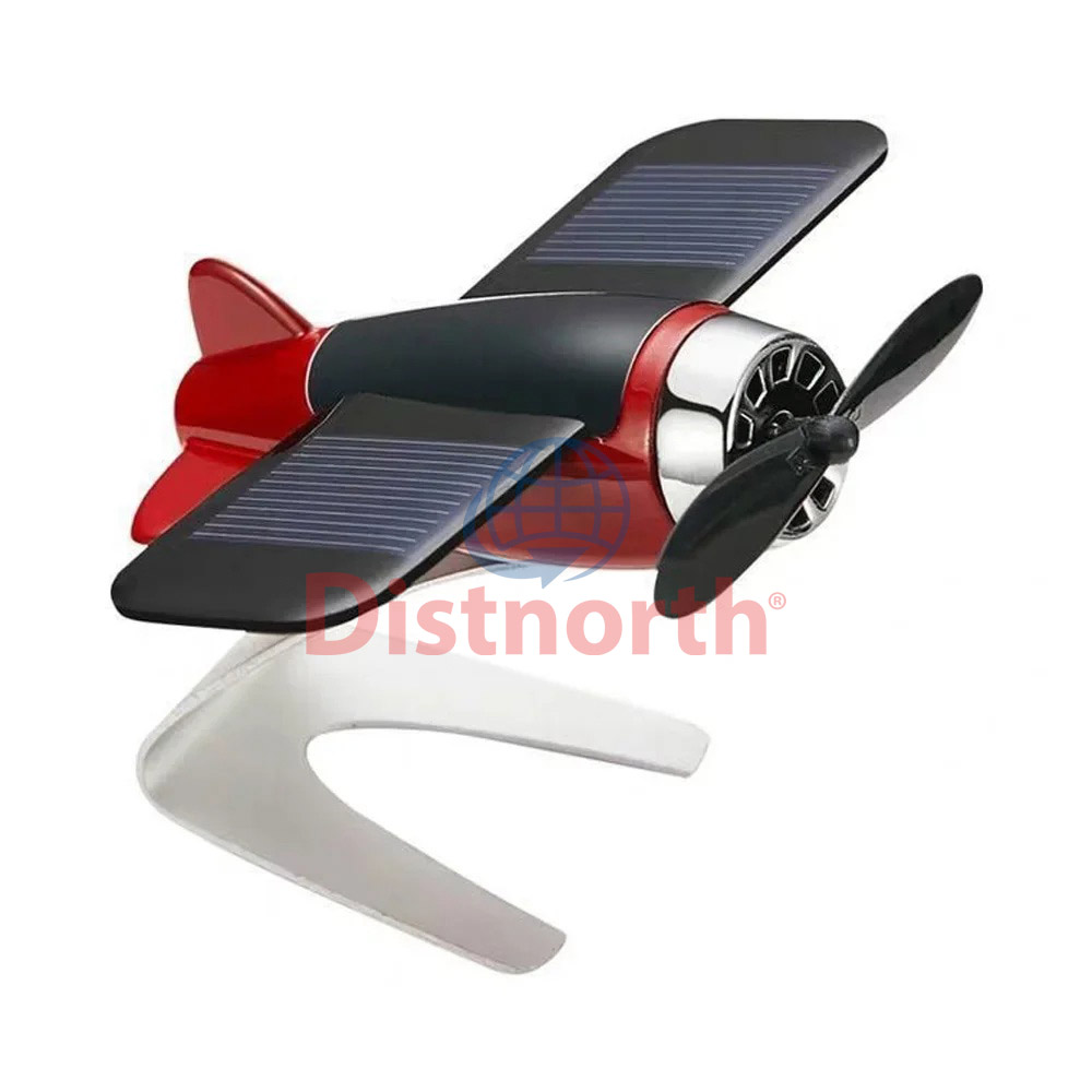 This red and black airplane ornament comes with an integrated solar-powered rotating mechanism that automatically spins when exposed to sunlight keeping the ornament in continuous motion.